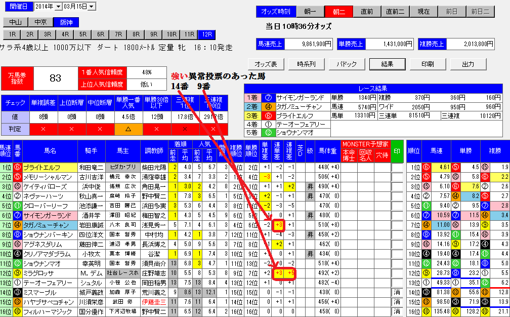 オッズ分析ソフトMONSTERでも異常投票馬として看破されていました。
