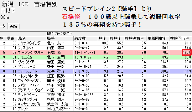 スピードブレイン2情報…小倉10R 血統より8.9番 騎手より9.11番と公開後に、11番が能力表に無い?のを不思議に思い見直した所、数値の欠損に気づきましたが後の祭り。
