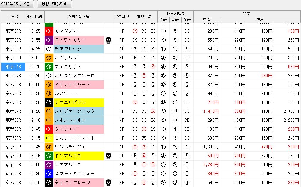 ヴィクトリアマイル穴ロジ的中〜競馬ソフト指数5/12結果