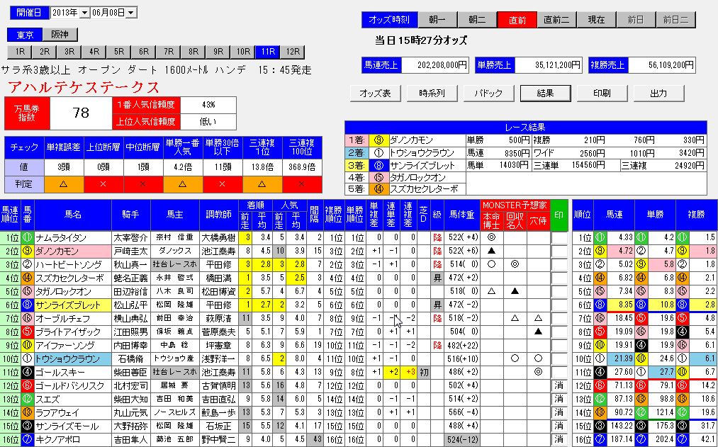オッズ分析ソフトMONSTERから、本日のMS馬を公開