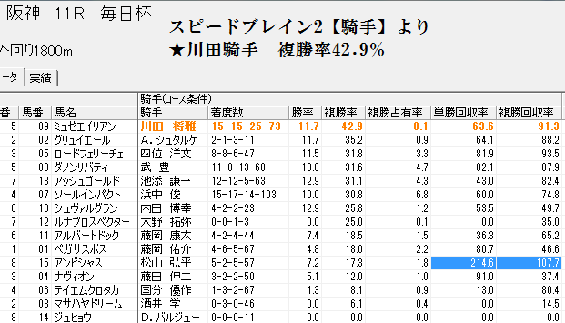 さすが得意のコース(複勝率42.9%)だけのことはありますね〜
