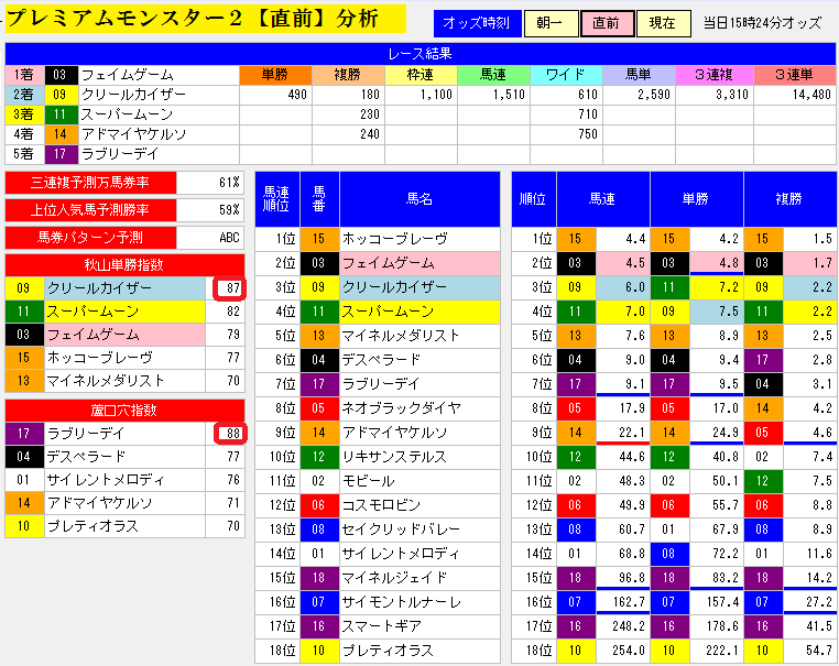 このブログではオッズ低下を懸念して、午前の能力表を非公開にしてますが…