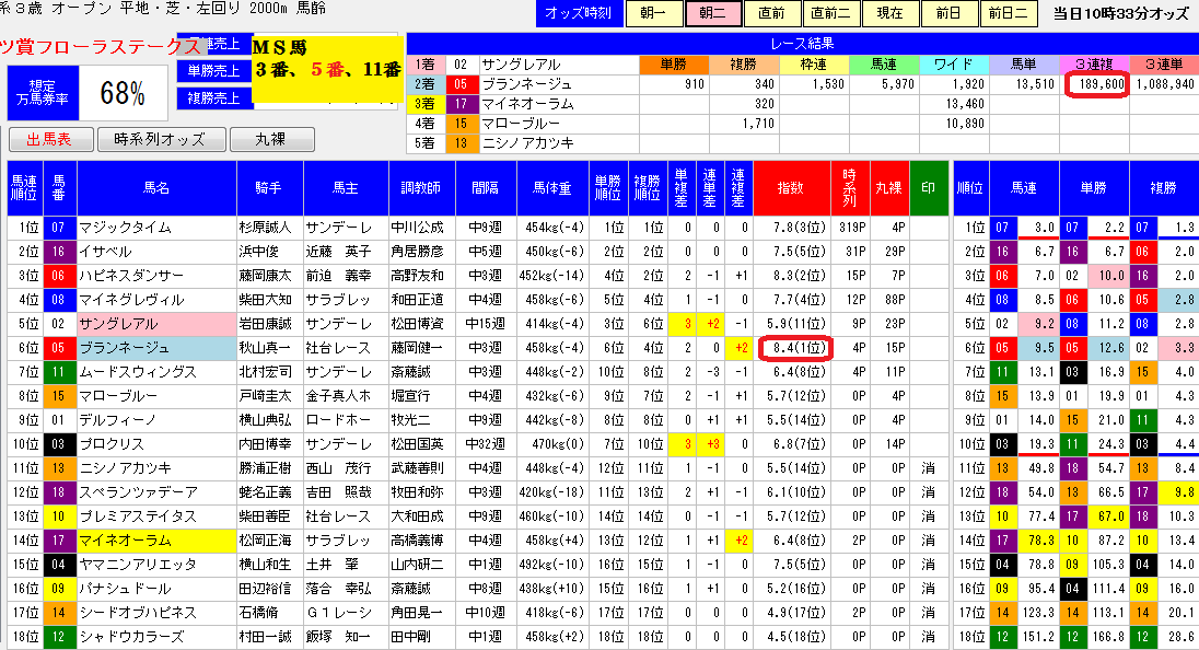 更に良馬場の東開催でもあり⇒想定的中率78%を望めるレースでした。