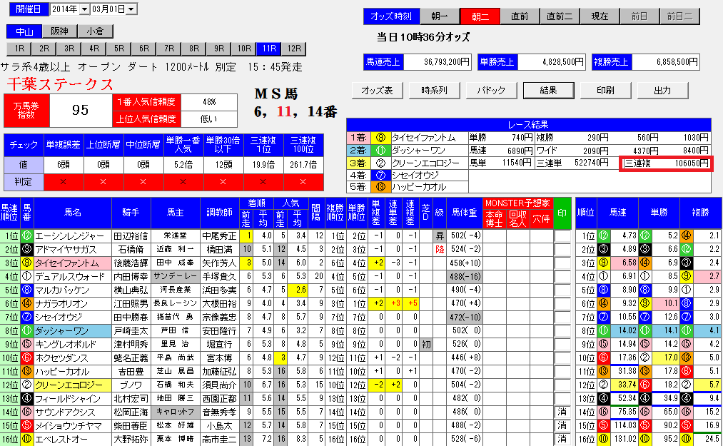 参考)オッズ分析ソフトMONSTER.ver7【朝二】画面より
