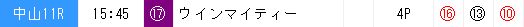 | 11R | 8 | 3 | 4 | 15 | 16 | 2 | 11 | A 13090円 | × |
